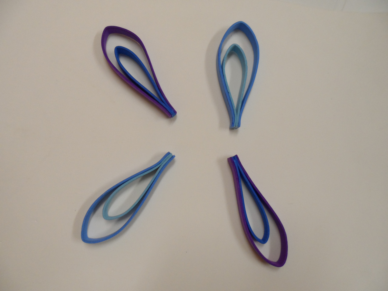 -Para elaborar las alas pequeñas cojeremos 4 tiras de goma eva de 1cm de ancho por 15cm de largo (color a elegir).