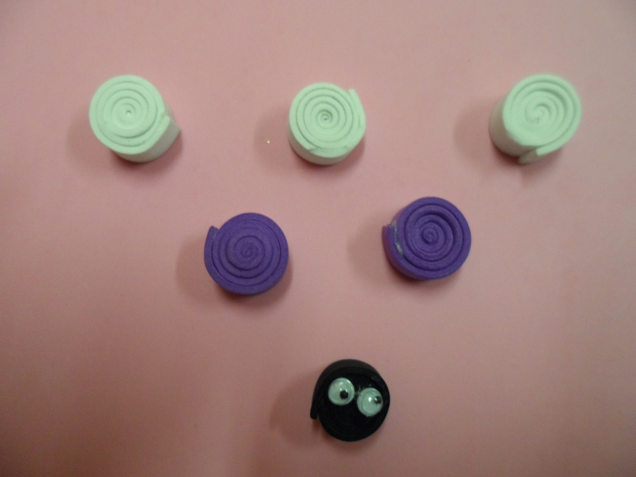 -Para elaborar el cuerpo necesitaremos 3 tiras blancas, 2 tiras de diversos colores(color a elegir) y 1 tira negra en la que luego pegaremos los ojos, las tiras mediran 1cm de ancho por 17cm de largo.